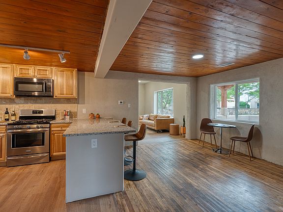 Charming Remodeled Adobe Home Just 20 Miles from LANL. Welcome to 720 School Street — a beautifully renovated adobe home and one of only seven exclusive units in the historic School Street Condominium complex. Nestled in a peaceful westside Española neighborhood between the Rio Grande River and the Plaza, this rare gem combines vintage charm with modern updates. This 3-bedroom, 2-bathroom home has been extensively remodeled. It features restored vintage oak flooring and luxury vinyl. Newer central heating with air conditioning, upgraded electrical and plumbing systems. The kitchen has been thoughtfully redesigned with hickory cabinets, granite countertops, a natural stone backsplash, & stainless steel appliances. The stunning master bathroom includes a granite countertop with dual undermount sinks, and the home is outfitted with a convenient stackable front-load washer and dryer. LED lighting has been installed throughout for energy efficiency, and the exterior has been updated with newer stucco, windows, and a durable corrugated metal roof. Outdoor amenities include two designated parking spaces, a large rear and side yard, plus a welcoming front portal. Residents also enjoy access to private limited common area and a shared 0.56-acre common space, perfect for relaxing or gathering with neighbors. This home offers the perfect blend of historic character and modern convenience. This detached condo functions as a home with the low maintenance convenience of a condo.