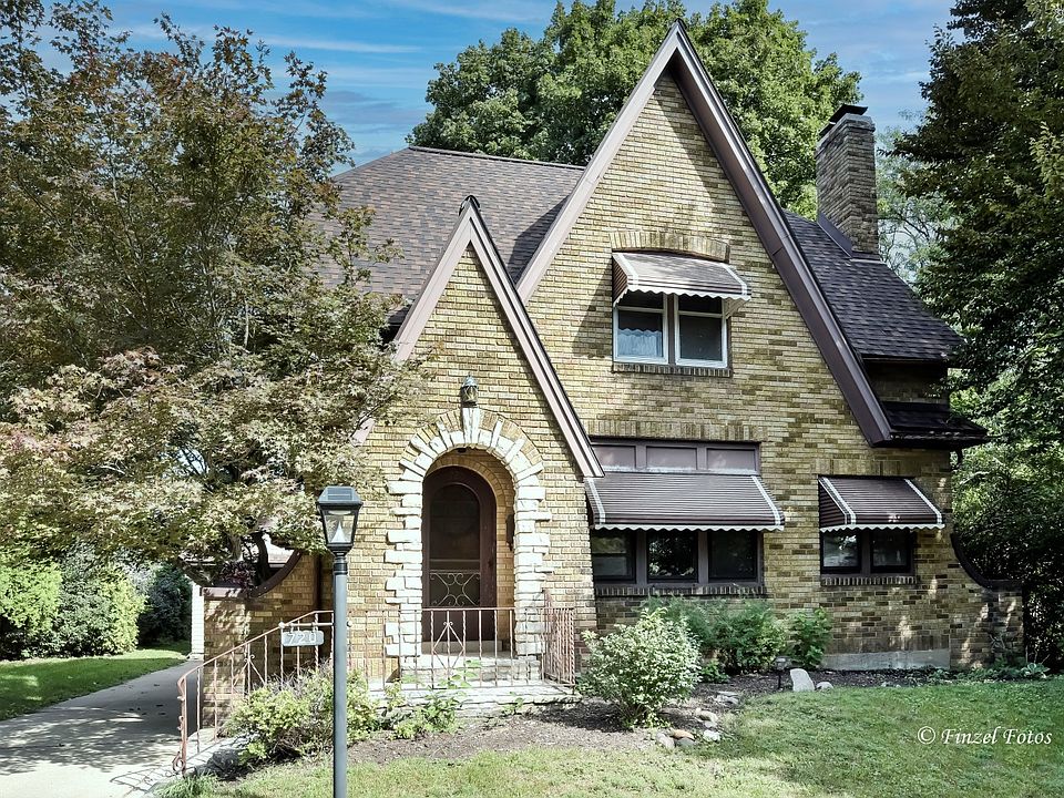 Beautiful spacious home, LOADED with Vintage Charm and Character! Stunning, Early 1900's Brick Storybook Cottage, complete with your own Hearth Room! Truly unique! Original woodwork, solid wood doors, custom trim & built ins, Tudor archways and gleaming hardwood floors throughout! Retro kitchen with gas cooktop, double oven, unique built in vintage foil, wax/paper dispenser and stainless steel refrigerator, separate dining room, large living room, 3 bedrooms with bonus sitting room in Main Bedroom! Full basement for additional future living space... already plumbed with additional brand new toilet, separate workshop area and tons of storage! Large, 2+ car garage with attached bonus storage area off back of garage. Deep lot with spacious patio overlooking tree lined yard! Updates include: NEW Roof 2017, NEW Boiler 2015, NEW Hot Water Heater 2020, NEW Garage Door Opener 2020, NEW Garage Storage Area Service Door 2022, NEW Refrigerator 2019, NEW Fresh Paint t/o 2022, NEW Electric Panel 2012... *Dates are estimated, Property is in good condition but being sold As-Is.