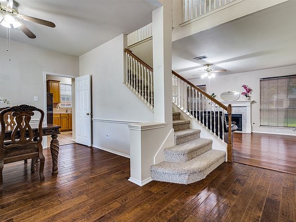4 bedrooms, 2.5 baths, 2 dining areas, game room. Engineered hardwoods in the entry, dining room, family room and primary bedroom. Spacious kitchen features an island, plenty of counterspace and cabinets and a gas stove. The breakfast nook overlooks the backyard and opens into the family room with fireplace. The primary bedroom features a vaulted ceiling, wood floors and the bath has a garden tub, separate shower and vanity with 2 sinks. The second level has two bedrooms, a full bath with 2 sinks and a game room. Utility room is large and has a window. Tons of natural light in every room. The awesome backyard has a large patio and pergola and plenty of grassy space. The long driveway is very versatile. Shed is included. Lewisville ISD. No HOA. Roof replaced 2021 and water heater in 2025. Convenient location just minutes from I35.