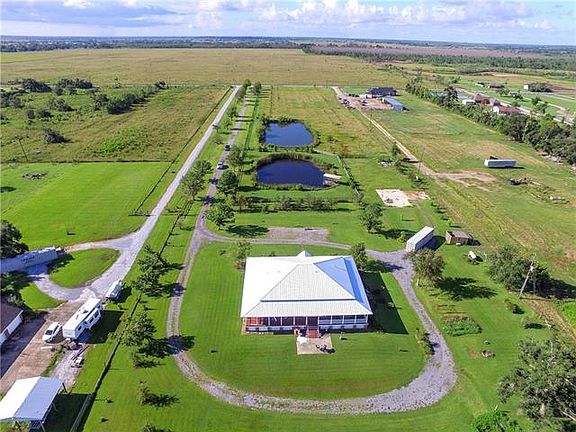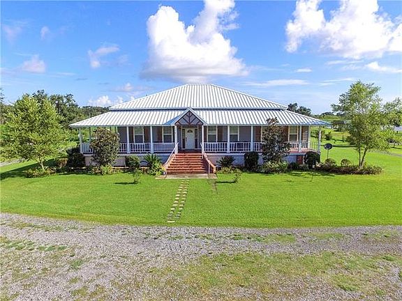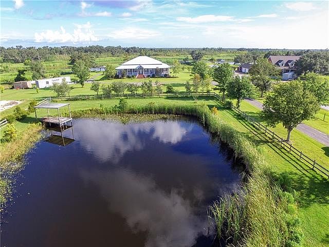 BEAUTY ON THE BAYOU - Custom built Acadian home on 10 acres with 275' of waterfront on Black Bayou. Close to town yet worlds apart. House is raised on brick-covered concrete piers, has never come close to flooding and has a new metal roof. Walk through the front door into the large family room with a dramatic tray ceiling and built-in entertainment center. The large master suite includes an office off the master bedroom, a very large master closet, and large master bath with a double sink vanity, soaking tub and separate tiled shower. The other 2 bedrooms share a second living area and full bath creating a separate apartment-like setting. The oversized kitchen with large built-in island and adjoining dining room both have great views of Black Bayou. Have your morning coffee or enjoy the amazing sunsets over the bayou on the 10' wide covered porches that wrap around 3 sides of the house. This property has so much to offer beyond the beautiful house. Oak trees line the long driveway w/ a variety of mature trees spread around the property. Two stocked ponds with a covered wharf on one of them. Over 200' of bulkhead on the bayou with a covered boat slip with lift on one end and a small wharf on the other. Sellable trees (river birch, live oak, and cypress) are planted on the front 5 acres. A few cosmetic repairs (porch railings, shutters, etc.) are underway and will be completed by the seller.
