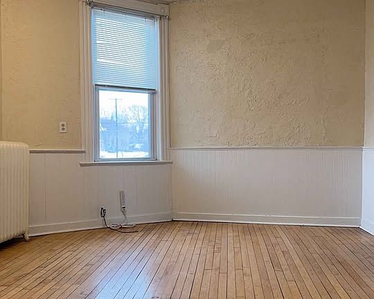 Freshly painted 2 bed, 1 bath apartment building with beautiful wood flooring and nice kitchen cabinets and countertop. Bathroom has been recently updated with white subway tiles and accents. Off street parking available for the tenant and laundry in the basement of the building. Owner pays water up to $20 per month and trash. Tenant pays electricity and gas.