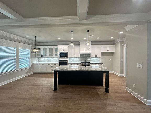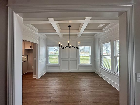 Lansing 8 Plan by Oconee Capital. On the main level you will find an inviting two story foyer leading into the great room. Open floor plan concept with LVP flooring throughout the main living area downstairs. The dining room features coffered ceilings. The kitchen is open to the great room and has a large island, granite counter tops, under cabinet lighting, gas range, great cabinet storage, and breakfast room. The great room has coffered ceilings and a gas fireplace. Bedroom with full bath on the main level. Tile in all bathrooms and laundry. Granite counter tops throughout the home. Upstairs you will find a huge media room/5th bedroom with barn doors and a closet. Master suite with walk in closet with built in shelving, garden tub, full tile shower, and his/her sinks. Two great sized additional bedrooms upstairs and another full bathroom.