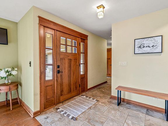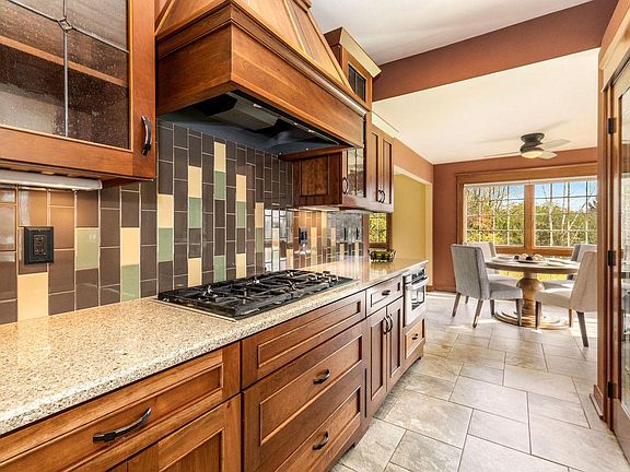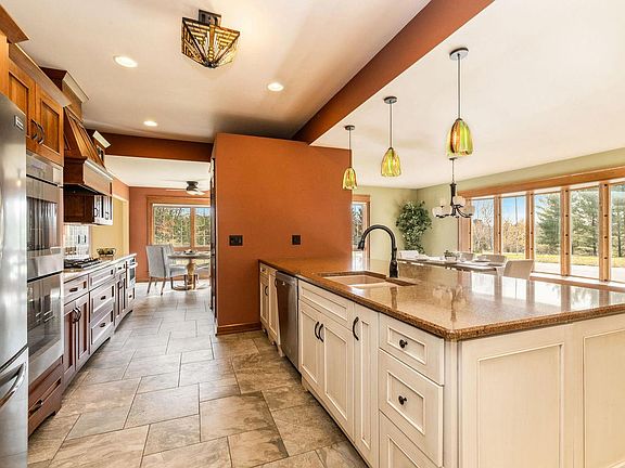 Incredible opportunity to own this beautiful brick ranch next to the highly esteemed Erin Hills Golf Course! Follow your private driveway lined with trees that turn a gorgeous golden color in fall. This 3 bedroom, 2.5 bathroom home was designed with aging in mind - single-level living, no-step showers, and wide hallways and doorways. Walls of windows fill the living areas with natural light and offer incredible views of the surrounding area. The kitchen includes a walk-in pantry, sliding drawer cabinets, built-in microwave, and hidden warming drawer. The primary suite has an ensuite bath and two walk-in closets. Outside, enjoy a large outbuilding with workshop and storage loft, plus the land is perfect for hunting, chickens, and horses. See this property for yourself to grasp its beauty.