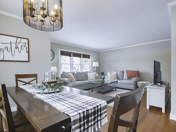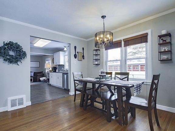 Pristine rambler on corner lot. Nice updates but still his original charm intact. Open floor plan with hardwood floors and newer planking. Newer kitchen cabinets, newer windows. Cozy main floor entertaining room with gas fireplace. This area walks out to huge patio area. Quartz countertops, tile backsplash. Bar area in basement. Driveway stamped concrete. This list goes on. Show today!