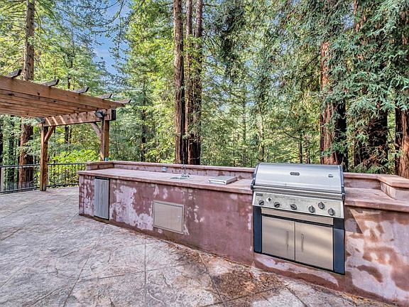 Discover your secluded paradise on this extraordinary 7-acre estate, just A½ mile from Scotts Valley. Dont let the address deter you. A private, gated driveway welcomes you to a tranquil oasis, where the beauty of the redwoods unfolds. Sit on the wrap around porch to take in views. Inside, soaring vaulted ceilings,and expansive windows flood the home with natural light. The kitchen features Corian counters, double ovens, a gas stovetop, and a breakfast bar, with ample room for casual dining. A formal dining room, family room, and convenient half bath complete the main level. Upstairs, find a luxurious primary suite, with double sided fireplace, two additional bedrooms, and a large bonus room with a full bath ideal as a bedroom, game room, or home office. Love outdoor entertaining ? This home has you covered, outdoor kitchen area, with BBQ, small pool with waterfall, firepit, horse shoes, putting green and trails to roam. Relish the peace, quiet and beauty of this property. Come and see!