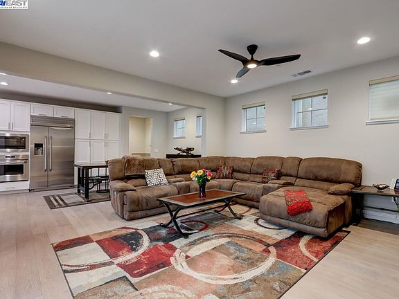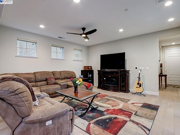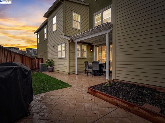 Beautiful North facing Wallis Ranch home. Enter this beautiful corner lot home through a covered entry porch to the welcoming living room with large kitchen featuring upgraded white cabinets with pull-out drawers, butlers pantry area, quartz countertops with full custom backsplash, top of the line GE Monogram stainless steel appliances, custom fully fit refrigerator, powerful kitchen exhaust system that can handle any type of cooking, large 5 burner cooktop stove, self cleaning oven & microwave. One bed w/attached full bath on the 1st floor, separate guest bath, recessed lighting w/smart fans, custom window coverings. Private courtyard awaits you, allowing for entertaining outdoor space. Head upstairs to the 2nd floor to the primary suite, generos walk-in closet, plantation shutters. Updated primary bath, tile floors, his & her sink, bathtub, and stall shower with glass enclosure. There are 2 bedrooms, full bath, laundry room w/sink, & spacious loft on the 2nd floor. Bonus level features a kitchenette, ½ bath & large living space. Nest thermostats, Nest CO2 detectors, Nest cameras, and smart fans. Wallis Ranch offers a community pool/spa, gym, club house. Close to East Dublin BART station, easy commute to Silicon Valley/San Francisco. Award winning schools.