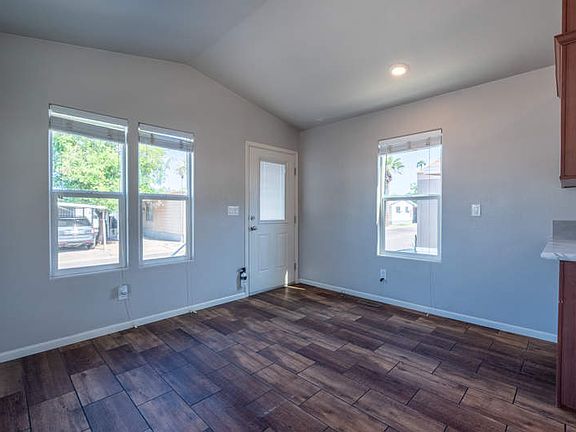 This 406 square foot Park Model home at Royal Glen in Glendale, AZ offers a cozy and compact living space with 1 bedroom and 1 bathroom. The home, built in 2018 by Champion, features a spacious living room and a well-equipped kitchen perfect for preparing meals and entertaining guests. The interior boasts modern appliances including a stove, oven, washer, dryer, and fridge, making daily tasks a breeze.Royal Glen is a vibrant community for all ages, offering a range of amenities and activities to enhance the residents' quality of life. The community features a clubhouse, swimming pool, fitness center, and organized social events for residents to enjoy and connect with neighbors. Situated in beautiful Glendale, AZ, residents of Royal Glen have easy access to shopping, dining, entertainment, and outdoor recreational opportunities, ensuring a fulfilling and convenient lifestyle.
