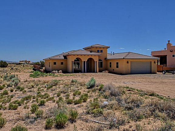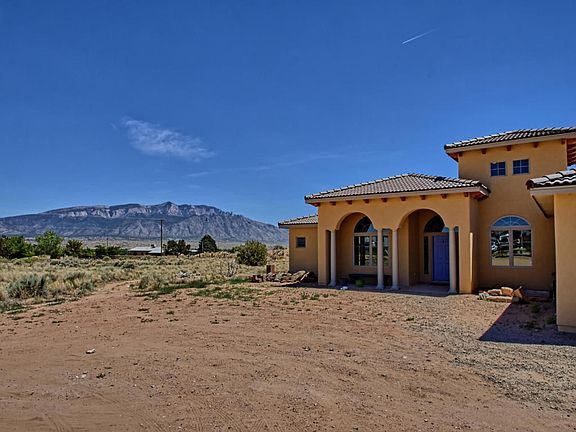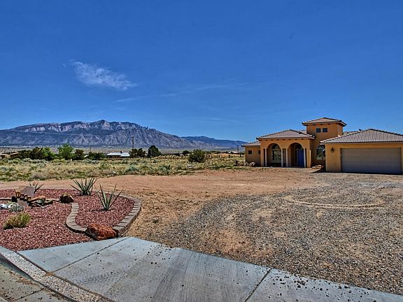 OPEN HOUSE SAT 6/17 FROM 1-3PM. FABULOUS CUSTOM HOME in a 1/2 acre lot! House features a chef design kitchen with plenty of cabinets,large kitchen island, granite counter tops, built in convection oven, SS appliances and a microwave convection oven. Spacious master on the east side of the house, big enough to fit all our furniture needs. 2 large bedrooms on the West side with a Jack & Jill bath. House also offers two additional rooms; one off the foyer that can be use as an office, formal living area or study room. The other room can be use as a 4th bedroom, guest or game room. Covered backyard off the dining area. GORGEOUS VIEWS of the Sandia Mountains! Backyard access and plenty of parking for all your toys, RV, boat, etc.!! Energy efficient solar panels! This is a must see home!