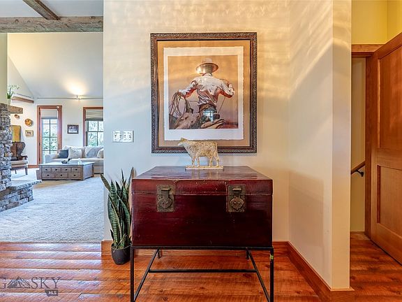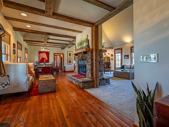 Stunning 3BR/3BA home on 5 acres in the coveted Springhill area just 10 minutes from Bozeman. Enjoy sweeping Bridger Mountain views and a warm, custom feel with exposed timber beams throughout the great room. The open kitchen and dining area feature new quartz countertops, a custom kitchen island with wine fridge, and a seamless flow for everyday living. A new enclosed sunroom attached to the home with its own private outdoor entrance offers a perfect retreat for entertaining or relaxing year-round. Features include a Generac whole-house generator with dedicated propane tank, well and septic with hand pump, central air, and a large bonus room over the garage. A spacious unfinished basement awaits your personal touch. Perfectly set up for horses with round pen, new loafing shed, custom fencing, and a large storage shed. Mature landscaping complete this exceptional property that blends comfort, quality, and Montana charm.
