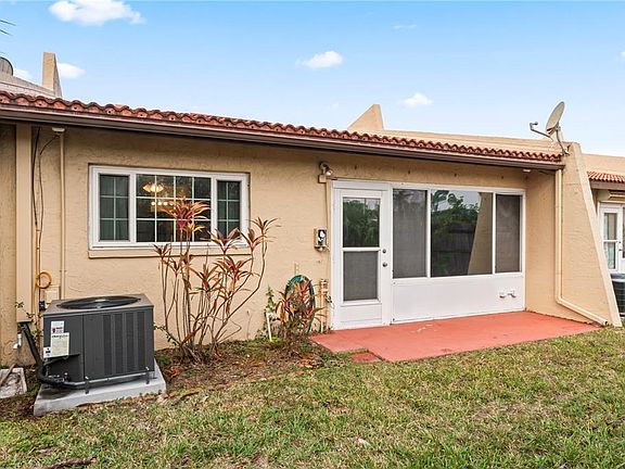 Drive into the quiet, peaceful grounds of The Villa Nueva Community – a private and well maintained community of only 53 one-story and two-story condos that feature clay barreled tile roofs and appreciate the quaint, storybook community. This Largo Villa does need updating. This could be an investor opportunity . This villa is not located in a Flood Zone! This 2 bedroom, 2 bath Villa, is near the community pool and clubhouse. The kitchen features a newer stainless steel stove and large wall pantry with several shelves. The villa floors are interestingly stained concrete for easy maintenance and cleaning. For maximum privacy, the primary bedroom is on the west side that features an adjacent bathroom with tub & shower . The east side bedroom is split from the primary bedroom. The 2nd bedroom has the closet with a stackable newer Washer/Dryer and the new water heater. The back patio continues this open concept to provide a light bright atmosphere as it looks out on to the back yard so you can sit and enjoy all types of Florida weather. Carport in front of the Villa and storage unit on the other side. HVAC was replaced in June 2025 and ductwork in replaced in 2020. Impact Windows installed (2021). The HOA fee includes Cable, Internet, Water, Sewer, Trash, Exterior Maintenance (Roof), Lawn Maintenance, Pest Control, and access to the community POOL & clubhouse! Centrally Located 10-20 minutes to Clearwater Beach with all its entertainment & restaurants, 10 minutes to St. Pete Airport and 20 minutes to Tampa. Seller will look at the best offer.