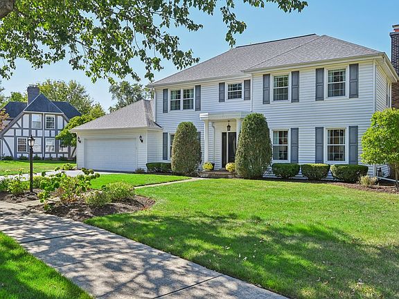 Location! Location! This exceptional home leads into a quiet cul-de-sac. The house offers an expanded two-car garage. The corner lot has additional yard areas for family fun and a large shed. As you enter the home, the modern living room will welcome you. Other highlights on the first floor include a formal dining room with wainscoting, a bright eat-in kitchen, and a fantastic family room with a gas fireplace and built-ins. Upstairs, the ample hall space will take you to four spacious bedrooms with plentiful closets/storage. The partially finished basement can be used for a home office, playroom, or gaming. The basement also features tons of extra storage space! Some of the many bullet point upgrades of this home include a new roof and soffits (2022), latest high efficiency furnace and 16 SEER AC (2024), updated neutral paint interior and carpet living/family room area (2023), 12" of additional inches of blown-in insulation in the attic, upgraded windows and hardwood throughout most of the home. Enjoy this family-friendly neighborhood within walking distance of McCollum Park with splash pad, pickleball and sports leagues and so much more!
