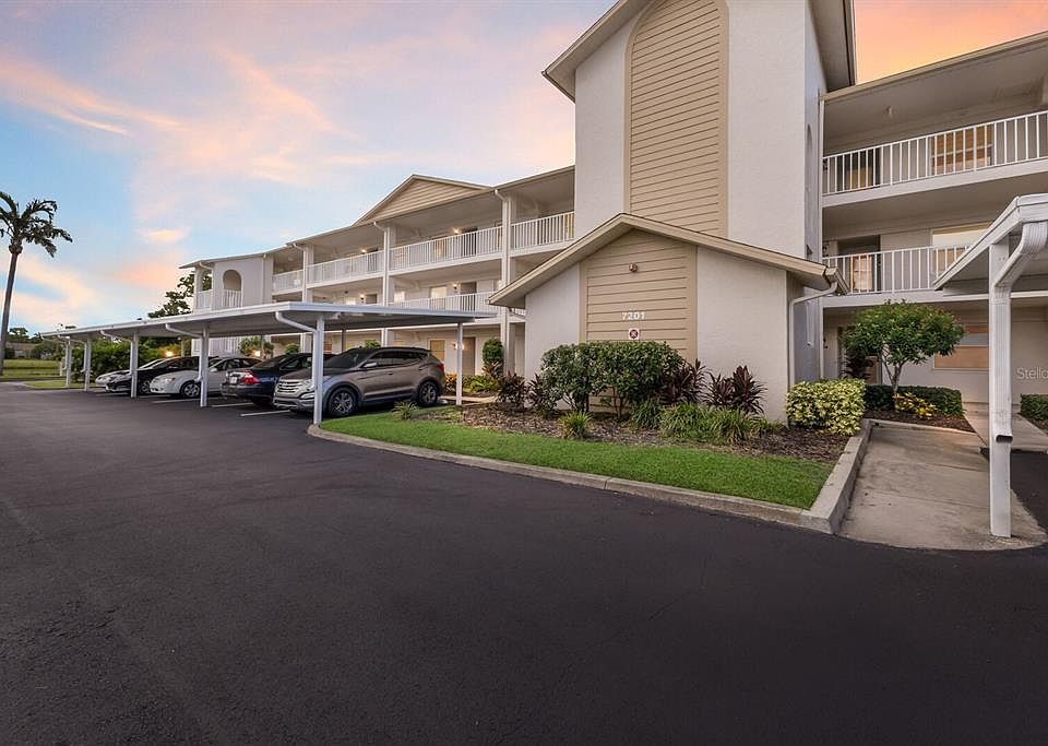 Welcome to this beautifully furnished first-floor condo located in the desirable 55+ community of Country Village. Convenience begins right at your front door with an assigned carport just steps away. Inside, the home impresses with a recently renovated kitchen featuring new cabinetry, stainless steel appliances, stylish countertops, a spacious breakfast bar, and a pantry closet for extra storage. The open floorplan creates a seamless flow throughout the main living areas, perfect for both everyday living and entertaining. The primary suite offers a private retreat with its ensuite bathroom and walk-in closet, while the split bedroom layout ensures privacy for guests, complete with a full guest bath nearby. An enclosed sunroom overlooks the lush, landscaped grounds, offering a peaceful space to relax year-round. Residents of Country Village enjoy an active lifestyle with a wealth of amenities, including a clubhouse, heated pool and spa, shuffleboard courts, exercise facilities, pool tables, a library, bingo nights, outdoor grilling areas, and a full calendar of social activities. Pet lovers will appreciate that one small pet up to 30 pounds is welcome. Ideally situated in West Bradenton, this condo places you minutes from everyday conveniences—restaurants, shopping, medical facilities, airports, and major highways—while also being close to the area’s best attractions. World-famous beaches including Anna Maria Island, Siesta Key, and Lido Beach are all within easy reach, along with St. Armand’s Circle, Lakewood Ranch, and professional sports venues. For a day trip, Orlando, Disney, and Sanibel Island are approximately 90 minutes away. Whether you’re looking to soak up sunsets on the Gulf of Mexico, enjoy boating, kayaking, or simply relax by the pool, this condo offers the best of Florida living at an incredible value. This is truly a must-see for anyone seeking a move-in ready home with resort-style amenities in a prime location.