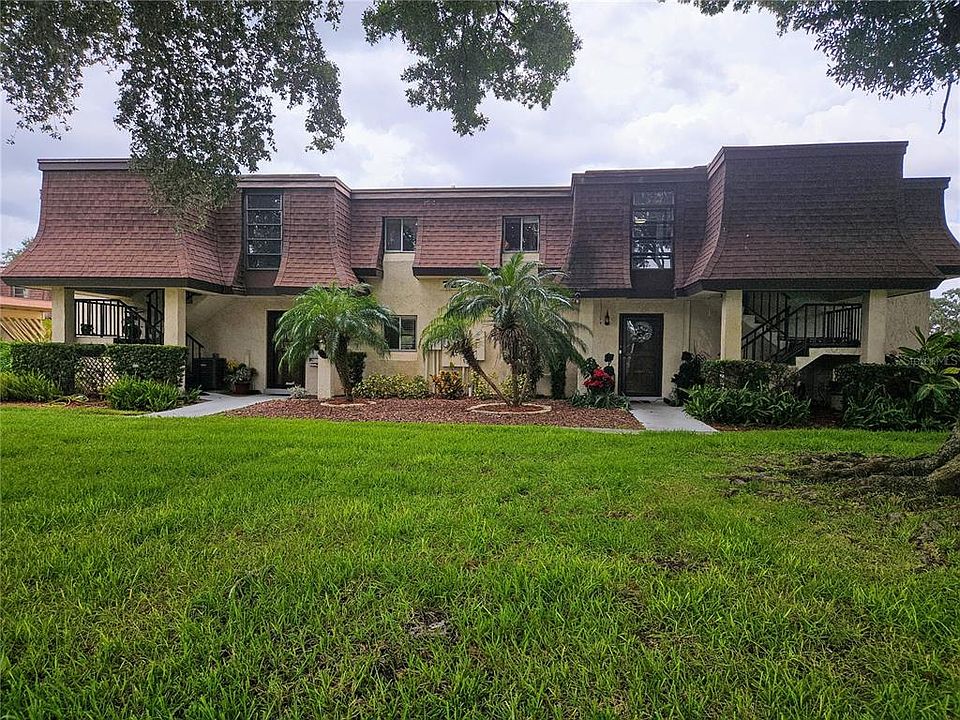 This beautifully furnished condo is ready for you to move in! Located in a desirable 55+ community near downtown New Port Richey, you'll be close to beaches, parks, shopping, and the Gulf of Mexico. Key features include: OPEN FLOOR PLAN: spacious living area and a nice size kitchen. OVERSIZED BEDROOM: Big master sweet with huge walk in closet. BALCONY ACCESS: Both the living room and master bedroom feature glass slides that lead to a balcony/porch, offering serene nature views. AMPLE STORAGE: There's storage space on both ends of the balcony for your convenience. NEW ROOF: The roof is scheduled for replacement in 2025. MODERN AC: The air conditioning unit is only 2 years old, ensuring efficient cooling. CONVENIENT PARKING: A covered parking space is located close to the front door. Enjoy peaceful living in this fantastic location! Ready to move in.
