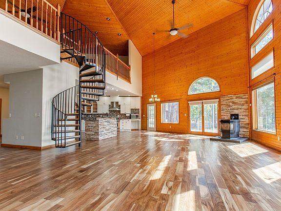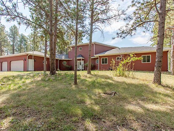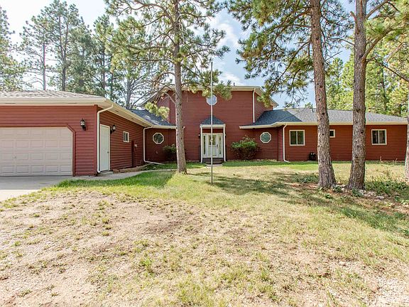 Listed by TJ Wojtanowicz Black Hills Realty 605-863-1920. Welcome home to 7201 Eagle Ln. This incredible home is a must see located on 4.71 private acres that backs up to forest service in the Woodland Hills Subdivision. The main level has tons of natural light, wood laminate floors, 2 en-suites, 2 additional bedrooms, an office, open concept layout with 20-foot ceilings, a clean bright kitchen quartz countertops and pantry, an additional 1/2 bath, spacious laundry room, and access to the huge private deck with magnificent views. Take the spiral staircase to the upper level where you will find a large open family room, an additional full bathroom, a large storage closet all overlooking the main floor and breathtaking views of the Black Hills. Outside you have ample parking, a private lot with views, a 3-car garage, and 2 storage sheds. Don't miss this opportunity to own this beautiful unique home on a gorgeous lot!
