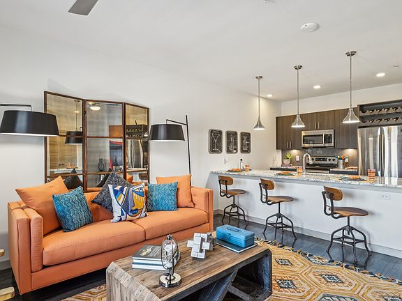 - Exterior features: *In Select Units, Access Controlled Entrances/Exits, Bocce Court, Built-In Closet Storage, Built-In Home Workspace *, Business Center, Community Social Activity Portal, Corner Unit*, Deep-Tub Stainless Kitchen Sink, Dove Grey Color Scheme*, Espresso Color Scheme*, First Floor*, Frameless, All-Glass Shower, Glass Tile Kitchen Backsplash*, Hard Surface Granite Countertops, Heating: Gas, High Ceiling Premium*, Kitchen Island, Lush Landscaping, Modern Frameless Cabinetry, Monthly Resident Engagment Events, Oversized and Framed Mirror, Package Receiving, Pet Park, Shuffleboard and Pool Table, Smart Home Keyless Entry System Included, Stainless-Steel Appliances, TV Lounge, Tide DryCleaning OnSite Service, Top Floor Premium*, Two EV Charging Stations, Two Pet Play Bark Parks and Two Doggie Spaws, USB Outlets, Upgraded Lighting With Premium, Walk-In Shower, Wine Rack, Wood-Style Flooring, Yale Keyless Entry Smart Home Technology