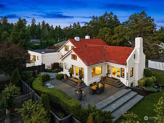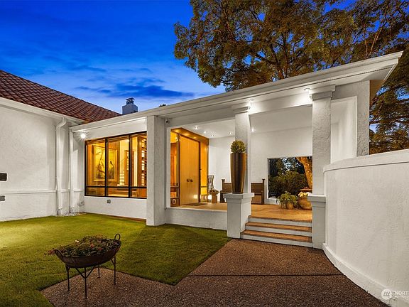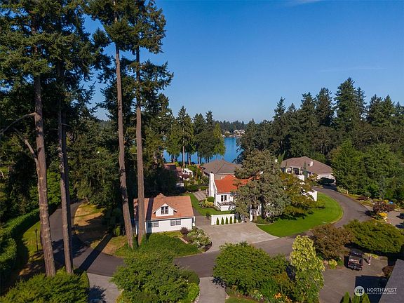 Amazing opportunity to live in a gated neighborhood of 11 homes on the shores of Lake Steilacoom.Prvt community dock w/ boathouse, open cabana, 240 ft of manicured waterfront park. Stunning Spanish colonial has been beautifully remodeled while keeping original craftsmanship. Chef's gourmet kitchen w.wrap around marble countertops huge island high end SS appliances new Genie sheving. Huge LR w/ rock FPL, 2 sets of French doors out to enchanting gardens, patios & balconies. 2 luxurious and spacious primary suits on main floor both with spa-level bathrooms! Super cool"Speakeasy" den w/ FPL & hidden full bar. Lots of buld-ins! Wood floors throughout. 3 car garage. Fenced prklike 1/2 acre. Huge wlk-out attic & 2,411' bsmnt.Ready to be finished!
