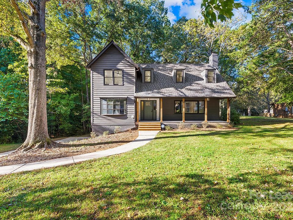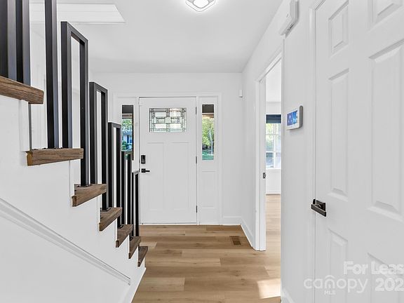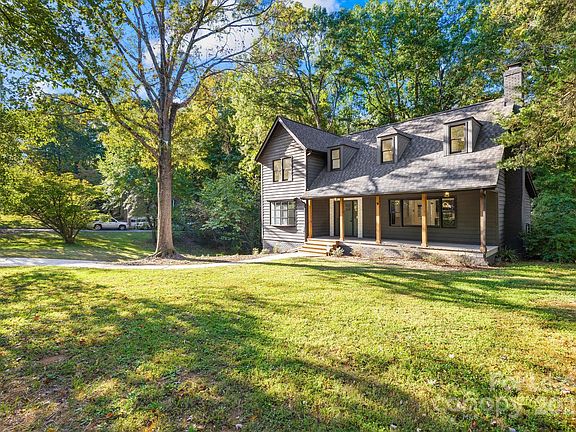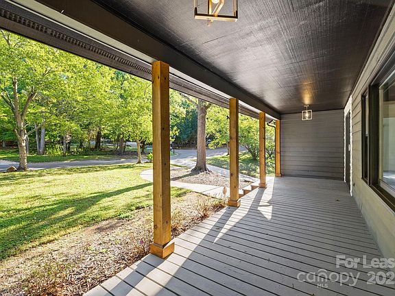 Set on over half an acre, this beautifully renovated home is a rare find in today's rental market. Thoughtfully renovated with designer finishes, it boasts a welcoming front porch, a bright, open layout with a spacious kitchen, elegant designer lighting, spa-inspired bathrooms and upgraded flooring throughout. The main floor features a open floor plan, a spacious kitchen with a large island, overlooking a dining area, and the living room, a laundry room, a dedicated office that can double as a fifth bedroom, a main-floor bedroom, and a full bath. Upstairs, the generous primary suite boasts an en suite with dual vanities and a walk-in closet, accompanied by two additional bedrooms and a full bathroom. Step outside onto the back deck with large umbrella for added shade and enjoy your own private backyard retreat - perfect for morning coffee, weekend gatherings, or quiet evenings under the stars. Charming side porch adds a bonus outdoor space. Additional highlights include garage parking with ample storage, a security system, and lawn care included. Ideally located near Toby Creek Parkway for nature walks, just a short drive to UNC Charlotte, and minutes from the light rail for an easy Uptown commute. This home seamlessly blends luxury, privacy, and convenience, making it an exceptional rental opportunity.