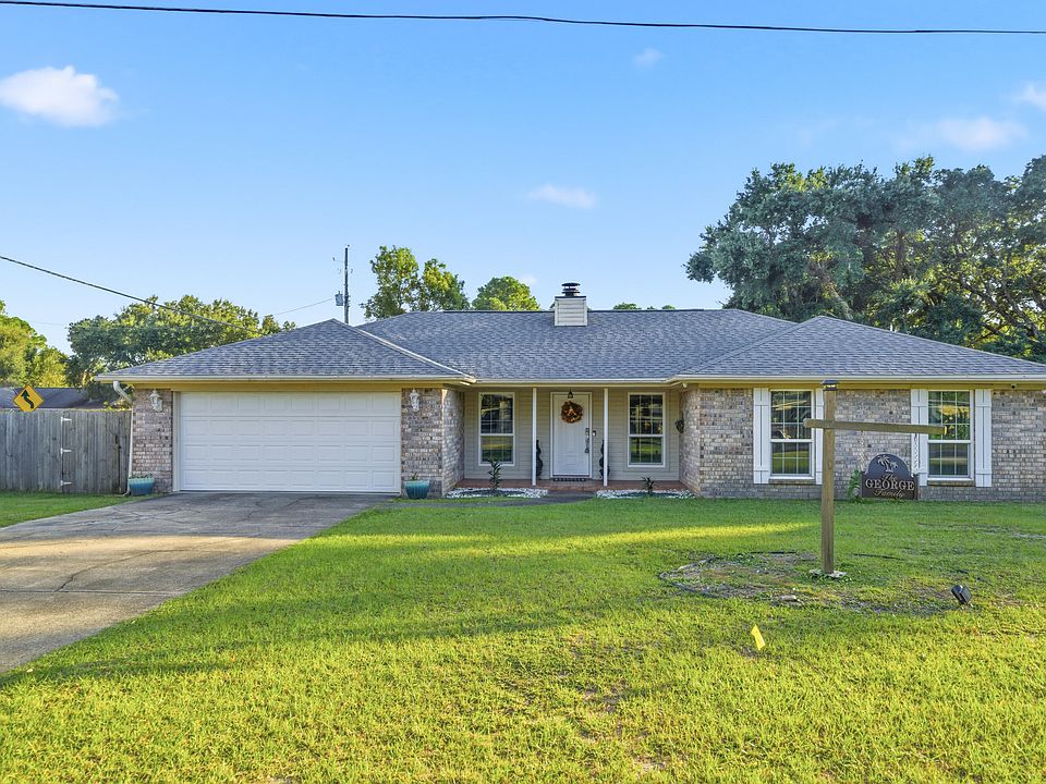 Charming 3-Bedroom Brick Home on a Corner Lot - Prime Location!Welcome to this beautifully maintained three-bedroom, two-bath brick home nestled on a spacious corner lot in a highly desirable area. Just minutes from the base and hospital, and surrounded by a variety of shops, restaurants, and essential services, this home offers both comfort and convenience.Step into a grand foyer featuring an elegant chandelier, setting the tone for the rest of the home. The living room boasts a stunning wood-burning fireplace framed in brick, crown molding, recessed lighting, and a second chandelier for added charm.Enjoy meals in the formal dining room with bay windows that bring in natural light. The kitchen is a chef's dream with granite countertops, a deep sink, stainless steel appliances, wood cabinetry, and a walk-in pantry with a stylish barn door.