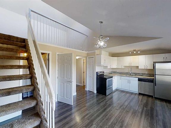 Renovated kitchenStainless appliances with dishwasherTiled backsplashLots of natural lightVaulted ceilings