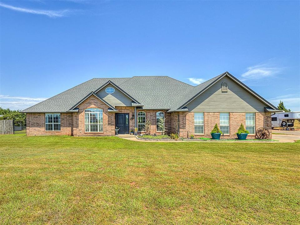 Beautiful horse property on 5 acres in Oklahoma City. With a total area of 2305 square feet, the property boasts four bedrooms and three bathrooms, making it a suitable choice for a family or individuals who value ample living space. The house features a split floor plan, ensuring privacy and comfort for the residents. Three of the four bedrooms have walk-in closets, providing plenty of storage space. The master bedroom stands out as a particularly luxurious space, offering a generous layout that includes a sitting area and a sizable walk-in closet. The master bathroom has been recently updated, showcasing modern amenities and stylish design. It includes a walk-in shower, a jetted tub for relaxation, a double vanity for convenience, a water closet for added privacy, and linen storage to keep things organized. For those with equestrian interests, the property offers a 12X20 loafing shed specifically designed for horses, ensuring their well-being and shelter. Additionally, a 22X40 shop with 220 Electric is available on the premises, which could be utilized for various purposes such as a workspace, storage area, or hobby space. The property is part of the Moore Schools district, providing access to education for families with school-age children. A large covered back patio adds to the outdoor living space, offering a place for outdoor gatherings, relaxation, and entertainment.