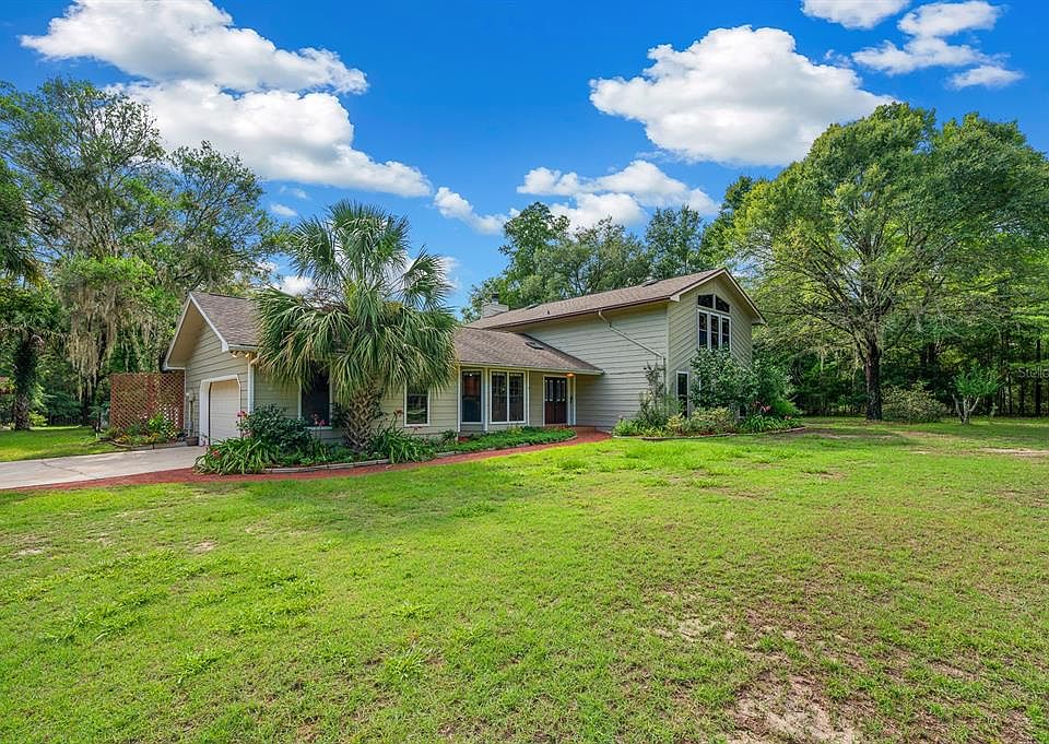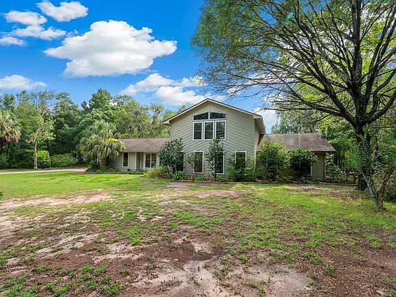 Seller will replace the roof prior to sale! Located just outside the Gainesville city limits, this beautifully crafted solid cedar wood home—built in 1984—offers a rare blend of privacy, natural beauty, and convenience on 4.42 acres in a community of custom-built homes with oversized lots and access to scenic neighborhood trails, perfect for peaceful walks and horseback riding—this community loves horses, so bring them! The home provides 2,840 square feet of living space with 3 bedrooms, 3 full bathrooms (including a Jack-and-Jill), and a spacious upstairs loft with its own bath and walk-in closet. The main living area boasts dramatic vaulted ceilings, while the kitchen and primary bath are equipped with sleek granite countertops. Hardwood floors in the living room and primary bedroom add warmth and charm, and French doors create an inviting entrance into the home. Outdoor living is just as impressive, featuring a large screened-in porch with a hot tub, a private pool surrounded by mature landscaping, and a peaceful artificial pond with a custom rock waterfall that often attracts local deer. A detached shed provides convenient storage, and all of this is just 15 minutes from UF, Shands, the VA, and close to shopping and dining. This well-maintained home offers a rare opportunity to enjoy timeless craftsmanship, open space, and modern comfort, all within easy reach of Gainesville’s amenities.