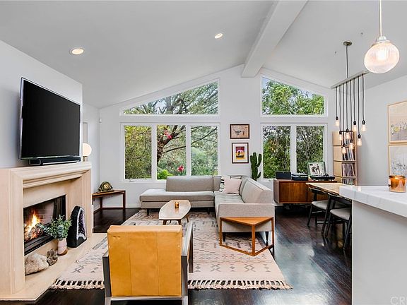 Your very own Hollywood Hills zen-infused tree house retreat with a ârock star pedigreeâboasts gleaming natural light, designer finishes, beautiful built-ins, and recent upgrades throughout. Main living area showcases soaring vaulted ceilings and extraordinary massive windows with lush greenery peaking through from every angle. The open floor plan entertaining areas seamlessly flow together from the living room with fireplace, dining room with stunning light fixture, to the chefâs kitchen equipped with Viking/Subzero appliances, carrera marble countertops, and radiating skylights. Rich hardwood floors lead you to the oversized master suite featuring a fireplace, sweeping walk-in closet and spa-like bathroom with dual sinks, soaking tub, and walk in shower. The serene terraced backyard offers ultimate tranquility with a huge outdoor deck with plenty of space for lounging, fruit trees, and room for a garden, all while overlooking surrounding plants, trees and gorgeous canyon views. Additional amenities include two bonus areas, both great for an office or fitness! Enjoy private, quiet, and relaxed living just minutes from Hollywood & Studio City, while still feeling remote.