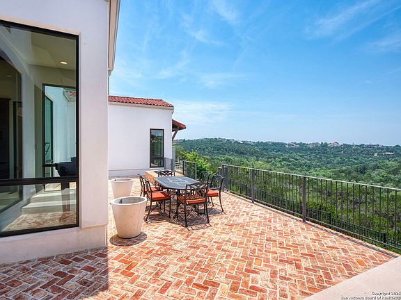 Experience elevated living in this exceptional Santa Barbara-style residence, where breathtaking panoramic views and refined design converge. Thoughtfully crafted to impress, the home features dramatic soaring ceilings and expansive floor-to-ceiling windows that bathe the interiors in natural light and create an extraordinary sense of openness. Every detail speaks to luxury, with rich quartzite surfaces, elegant Portuguese limestone, and hand-painted custom tile throughout.  The living area exudes warmth and sophistication, anchored by a natural stone fireplace mantle, custom wood cabinetry, and a striking Visual Comfort chandelier paired with matching sconces. A mirror adds depth and reflects the home's timeless elegance. The dining area continues this refined aesthetic with its own Visual Comfort lighting ensemble, creating a seamless flow ideal for intimate dinners or grand entertaining.  The gourmet kitchen is a chef's dream, outfitted with top-of-the-line Thermador appliances, a designer tile backsplash, steam oven, dual wine refrigerators, a spacious walk-in pantry, and a well-appointed butler's pantry.  Retreat to the luxurious primary suite, a sanctuary offering serene vistas, dual closets, and a spa-inspired bath crowned by a Schonbek chandelier. The ensuite features exquisite Visual Comfort brass and crystal sconces, creating a glow of sophistication. The home's additional bedrooms include wood flooring, ceiling fans, and private ensuite bathrooms, ensuring both comfort and seclusion.  His and her closets are truly bespoke. His features custom wood cabinetry with remote drop-down access, cedar-lined compartments, brass fixtures, and soft cabinet lighting. Hers is a jewel box of design with two Schonbek crystal chandeliers, shoe and purse cabinets, glass shelving, mirrored cabinet doors, cedar-lined interiors, crystal hardware, and ambient cabinet lighting-both practical and glamorous.  The study is richly finished with wood paneling, floors, built-in cabinetry, a ceiling fan, and elegant brass Visual Comfort wall sconces, offering a perfect space to focus or unwind.  The powder room is a statement in itself, with luxurious granite finishes on both the wall and countertop, a sophisticated vanity with premium sink and faucet fixtures, and luminous Fine Arts Lighting, including a chandelier and sconces that enhance the space with timeless beauty.  Step outside to expansive outdoor living areas, perfect for entertaining or cozy evenings by the fire. A fully equipped outdoor kitchen completes this remarkable setting.  For the eco-conscious homeowner, the property also includes a dedicated electric vehicle (EV) charging station-integrating sustainable convenience without compromising luxury.  This one-of-a-kind Cresta Bella home offers an unrivaled living experience-crafted with distinction, designed for comfort, and destined to impress.