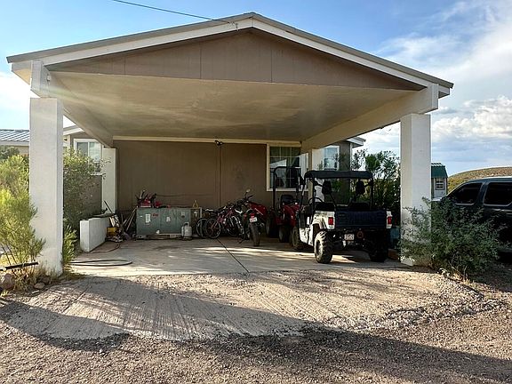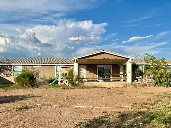 Gather your kids, gather your critters This large 3 bed 2.5 bath home sitting on top of a mesa with just over 4.5 acres, simply CANNOT wait to meet you!! Panoramic views, and 2 large patios provide the perfect spot for hosting bbq's, sipping on a drink, or play time. Interior spaces are open, spacious, and inviting. The open concept kitchen area includes breakfast bar, dining area and one of the two family rooms. When the day is done you can relax in the generously sized primary bedroom with an en-suite bathroom and oversized walk-in closet. This property comes with 3 storage sheds, some fending in place, a METAL roof, and oversized carport area. Serviced by city water, though there is a well (in need of repair) to accommodate outside watering.