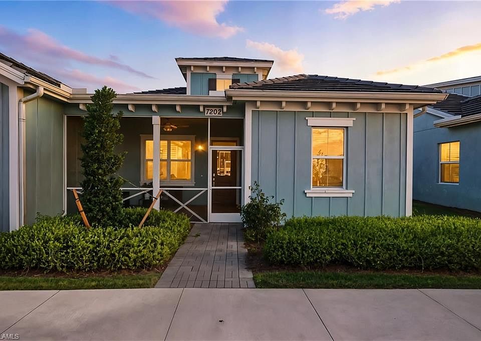Step into tropical COASTAL ELEGANCE with this attractively FURNISHED “Sanibel Cottage” — an inviting, quiet retreat featuring 2 bedrooms, 2 full upgraded tile baths, and a spacious 2-car garage — all complimented by soft grey blue custom cabinetry throughout. Stylish ash wood look plank flooring flows throughout the main living areas and complemented by the tike: from the warm sand & cream tone stone, modern large format tile and highlights with sparkling mosaic glass tile in both bathrooms. A seamless blend of comfort and tasteful coastal sophistication. The open gourmet kitchen shines with stunning white quartz countertops, nearly never used stainless-steel appliances, high volume ceilings for drama and an open airy layout perfect for entertaining friends and family. WITH FURNISHINGS and curated DECOR CONVEYING - the investment or snowbird value exceeds other options. The result —— an enhanced modern coastal cottage feel that delivers a warm, relaxed, and beautifully polished atmosphere for your perfect piece of SWFL paradise! Beyond the front door, residents enjoy an unparalleled lifestyle within a secure, meticulously maintained gated community inspired by Minto’s award-winning coastal architecture. Indulge in and ABUNDANCE in RESORT-STYLE AMENITIES including a state-of-the-art clubhouse, fitness center, and both lap and resort pools. Outdoor enthusiasts will love access to pickleball, tennis, kayaking, paddle boarding, and over 8 miles of scenic nature trails and waterways. After a day of adventure, unwind at the EXCLUSIVE Overlook Bar & Grill RESTAURANT while taking in breathtaking views. All of this is just minutes from pristine beaches, 5th Avenue, and exceptional dining—offering the perfect blend of luxury, leisure, and convenience. THIS is both SERENE AND ACTIVE nature preserve living without sacrifice!