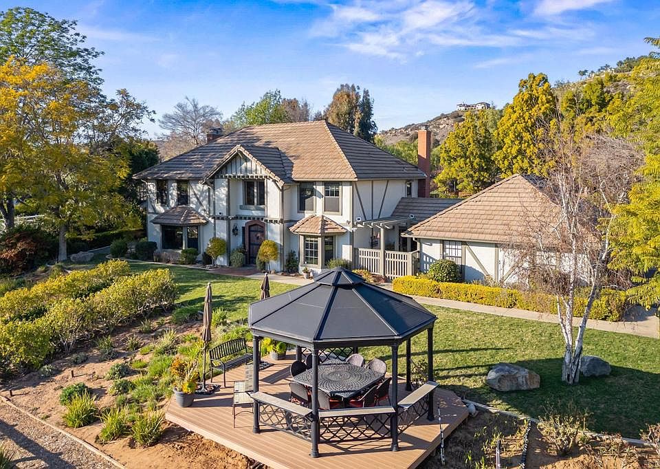 Discover an extraordinary equestrian estate nestled in the highly desirable Saratoga Estates gated community. This impressive property spans 2.5+ acres, offering private access to an exclusive trail system that winds its way through the community. Drive up the long, scenic driveway, to be warmly welcomed by your horses in their sprawling pasture. Enjoy stunning sunsets, breathtaking hillside views, and a refreshing ocean breeze from a gazebo overlooking the horse facilities where you will find a Shedrow barn with four stalls, spacious in-and-outs, turnout, wash rack, hay storage, tack room, and outbuildings. Additionally, there is a separate riding arena and room for trailer storage beyond. This lovingly remodeled home features 3 bedrooms, 2.5 bathrooms in the main house, while a separate guest/pool house offers an additional bedroom and bath, ideal for guests or a private retreat. The heart of the home is the stunning gourmet kitchen, complete with gorgeous quartzite countertops, a striking onyx backsplash, an oversized walnut island, and top-tier stainless steel appliances - including a 6-burner Thermador Professional range, dual dishwashers, and refrigerator drawers. Expansive custom cabinetry, built-in seating area, and travertine flooring complete this exceptional space. The formal dining room boasts custom built display cabinets with finely crafted China storage drawers. The spacious living room with adjacent library nook is an ideal space for gathering. A sizable utility/laundry room offers abundant cabinetry, counter space, service sink, and secondary refrigerator. Rich hardwood flooring flows throughout the main living areas. The home is equipped with an oversized owned solar system and central vacuum, enhancing both comfort and energy efficiency. Upstairs, the primary suite is a serene escape, featuring a cozy fireplace, an extended balcony, and beautiful hillside views. The luxurious primary bathroom offers a whirlpool tub, onyx tiled walk-in shower, natural stone flooring, and dual vanities with ample custom storage and fossilized limestone counters. Downstairs, French doors lead to the rear grounds where a solar-heated pool, lounging area, and built-in BBQ station await, all surrounded by mature landscaping and an array of fruit trees. Enjoy stunning sunsets, breathtaking hillside views, and a refreshing ocean breeze from a gazebo overlooking the horse facilities where you will find a Shedrow barn with four stalls, spacious in-and-outs, turnout, wash rack, hay storage, tack room, and outbuildings. Additionally, there is a separate riding arena and room for trailer storage beyond. With direct access to more than 8 acres of shared community open space directly behind the home, and miles of riding trails, you can explore the beauty of Bonsall right from your doorstep. Saddle up and follow your dreams - schedule your private tour today!