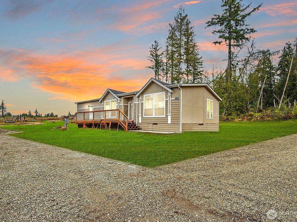 [BRAND NEW HOME] luxury manufactured home on 2.46 picturesque acres in the peaceful Tulalip area near Kayak Point! Oversized front deck invites you into the open great room filled with natural light. The kitchen features wood cabinets, an undermount sink, a HUGE island, and stylish appliances. The spacious great room flows into the dining area w/ slider access to a large back deck, perfect for entertaining. This home offers 3 generous bedrooms, including a private primary suite with walk-in closet and spa-like bath with double sinks, soaking tub, and walk-in shower. A large laundry/mud room with separate entrance adds convenience. This level property is bordered by mature trees and provides ample room for a shop, RV parking, and hobby farm.