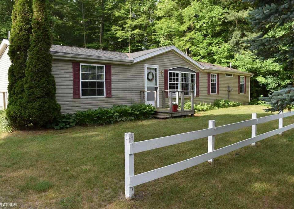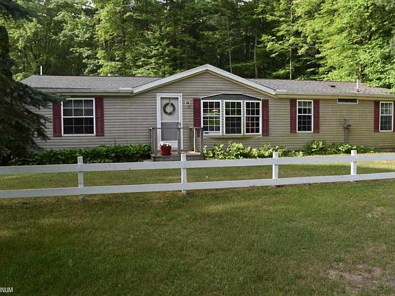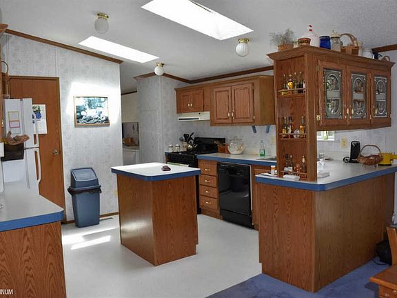 This beautiful split ranch style manufactured home sits on over 6 acres of woods! Two out buildings used as a shed, one Woodstove heated workshop. Beautiful decking along the back of the house for entertaining and enjoying the wildlife.Plenty of room for gardening and outdoor fun! Inside: oak cabinetry in the kitchen with snack bar and built-in china cabinet with etched glass doors. Door walls in dining room and family room, lead out to the deck. Roomy master bedroom with master bath. Skylights add character and natural lighting. Lots of room to grow! Licensed realtor must be physically present at all showings. Property is two lots being sold together see photo in Documents Agents you can drive back into the woods.