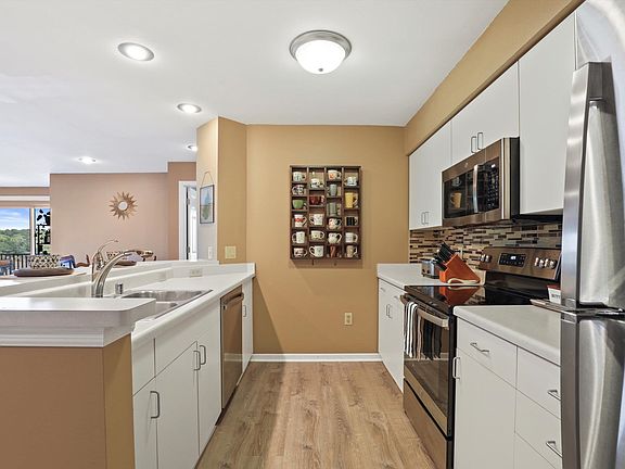 Thoughtfully updated top floor corner condo at Ashbury Woods! This property displays beautiful, wide-open views of woodlands and open land surrounding the association. Natural sunlight is abundant throughout entire unit! Kitchen includes breakfast bar with open concept to dining area. Primary bedroom suite has private bathroom and huge walk-in closet. Second bedroom and main bathroom are on the other end of the unit for complete privacy. Convenient washer and dryer in unit! Personal storage unit a few steps away from front door in the hall. 24 hour access to exercise room available on first floor. Covered secured parking garage with opener or owners key access only.