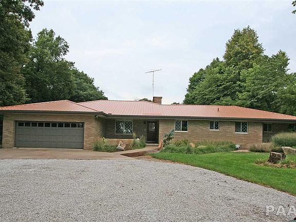 2900 fin. sq ft brick ranch style home with 5+ acres. New roof! Spacious & functional kitchen with breakfast bar. Multi-sided fireplace in family room & living room. Bedrooms zoned for quietness. Basement with 2nd kitchen, versatile living area, 19 gt bar, large rec room with terrazzo floor. Multi-level decks. 2 car attached & 2 car detached. Shared Drive-way. Appliances are working but not warranted. Great backyard! Close to Rock Island Trails, Jubilee State Pk, Wildlife Prairie Pk, Shopping & all major highways. Immediate possession.Pool sold "as is".