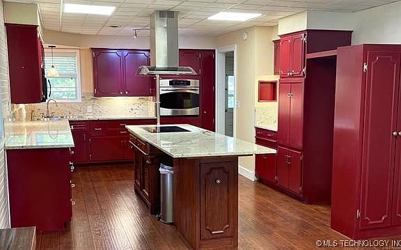 Lower deckInduction rangeRed iron shopSteel carportGranite countertopsMetal roofGarden house