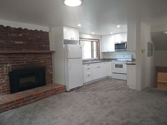 You will love how light and bright this home is with new upgraded carpet and fresh paint. Nice sized living room/ dining room with a cozy fireplace. An additional large den and bedrooms with plenty of built in storage space. Nice kitchen with extra-large window and butcher-block counters. Washer/dryer in the house.