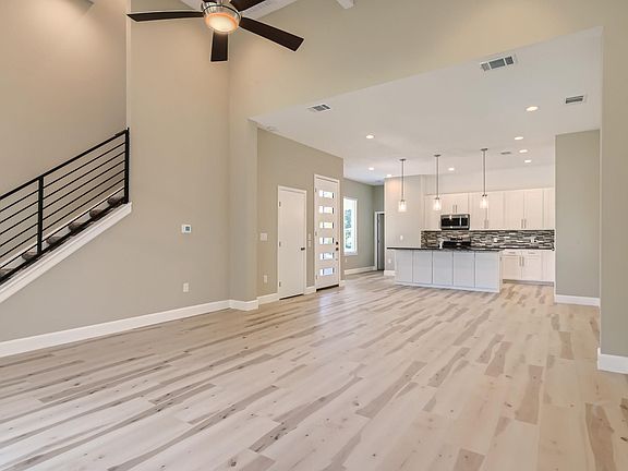 - Ceiling Fan(s), Double Vanity, Electric Dryer Hookup, High Ceilings, Interior Steps, Kitchen Island, Open Floorplan, Pantry, Primary Bedroom on Main, Quartz Counters, Recessed Lighting, WD Hookup, Walk-In Closet(s), Washer Hookup