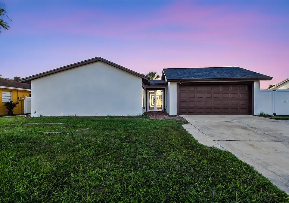 Seller motivated! This fully renovated 4-bedroom, 3-bath home offers a modern open floor plan and exceptional quality throughout, featuring a completely updated kitchen with a massive waterfall island, double ovens, drop-in cooktop with hood range, new cabinets, countertops, light fixtures, doors, flooring, accent walls, and all new plumbing behind the walls. All bathrooms have been remodeled within the last year and include automatic toilets, hotel-style mirrors, upgraded fixtures, and beautifully tiled showers. The master suite features a custom wood ceiling, a large walk-in closet, and a spa-inspired bathroom with a separate tub and shower and dual sinks. Additional recent improvements include new ductwork, new AC, new roof, new windows, new exterior water heater, updated stucco texture, fresh interior and exterior paint, new fascia, soffits, gutters, and updated landscaping with new palm trees. The home also offers a two-car garage, fully fenced yard, and renovated lanai, with no deferred maintenance. Property is priced under appraised value, and the current appraisal is available. Also a clean four-point.