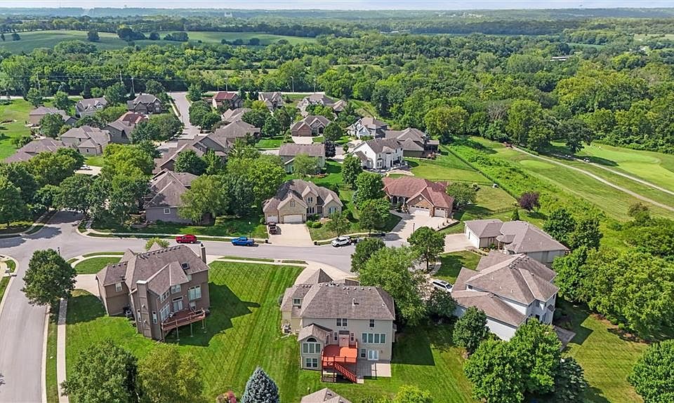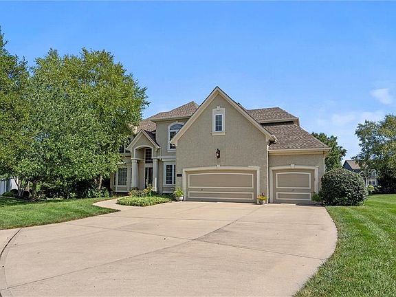 Updates have JUST been made!! THIS HOME IS HUGE! LOOK at this one! Almost the entire lower level has been painted & Primary bedroom upstairs has been painted. New carpet had been installed throughout the whole house. Just added new ceiling fans & light fixtures! Seller just updated the knobs on the cabinet doors on the main level, new kitchen faucet. Hard wood floors have a low sheen finish. Original Owner Custom Built-established Fairways community! FINISHED 3,436 & 1,528 Unfinished!! There is no basement finish with listed sqft! Huge kitchen w/custom Birch cabinets, large island with granite tiles, and pullouts, cooktop oven, refrigerator stays & washer & dryer. THREE fireplaces, seller designed all three, in hearth, great room, and primary bedroom. Large primary bedrm has a sitting area & amazing walk in closet, tiled bathroom w/double vanity and third for makeup design! Secondary bathrms all have tiled floors. 2 bedrms are joined with Hollywood bathroom, private sinks and share shower/tub. Additional secondary bathroom has private full bath! Home has formal dining & office area. 2 inch real wood blinds. Unfinished basement has over 1,528 sqft for future finish, stubbed for kitchen/bar, bathroom, also stubbed for water softener, & extra water heater. 5 windows, and french doors. BIG ticket items are newer, high efficiency-16 seer, zoned/dual heating and cooling system, newer H20 heater, & roof & gutters. Seller originally paid thousands over on all allowance, including extended sqft, 2x6 exterior walls! Patio runs full length of the house, aprox. 38x12. Cul-De-Sac lot by golf course. DEEP GARAGE, aprox 25 1/2 ft. Stucco exterior, long driveway full 3rd garage length. You can see 2nd & 3rd hole of golf course from the deck. Dusk to dawn outside up lights & switch. Eves have outside switch for Holiday lights. This is a beautiful home! Award winning Staley High School. 15 Minutes from downtown MCI & KCI Airport and next door to Liberty shops & restaurants.