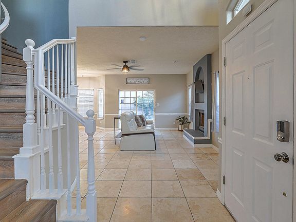 Welcome to this charming 2-story, 3-bedroom home nestled near North Domingo Baca Park! This inviting property boasts a new roof in Nov. 2023 and energy-efficient solar panels, ensuring both sustainability and savings. The main floor features elegant tile flooring, two spacious living areas, and a cozy fireplace perfect for relaxing evenings. Upstairs, you'll find updated luxury vinyl flooring, and modern touches throughout with multiple new faucets and light fixtures. Laundry room is also upstairs for convenience. Step outside to a lovely, covered patio area, ideal for outdoor dining and gatherings. Located near shopping, dining, and entertainment--this home offers comfort, style, and convenience. Don't miss out!