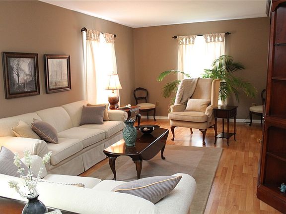 Don't miss this rare opportunity to own a fabulous move-in ready home in Fairview's Whitehall Village! Spacious living room and family room with hardwood/laminate floors, beamed ceiling, and brick gas fireplace. "Open" eat-in kitchen with Corian countertops, black appliances and ceramic tile floors flows out to stunning 4-season room. Lovely master suite with ceramic tile shower, double sink vanity and twin closets. First floor laundry room with washer/dryer included. Updates include: roof, windows, HVAC, hot water tank, driveway/sidewalk, basement glass block windows and more. Neutral colors throughout. Two partially finished basement bonus rooms. Private yard with brick paver patio. No disappointments!