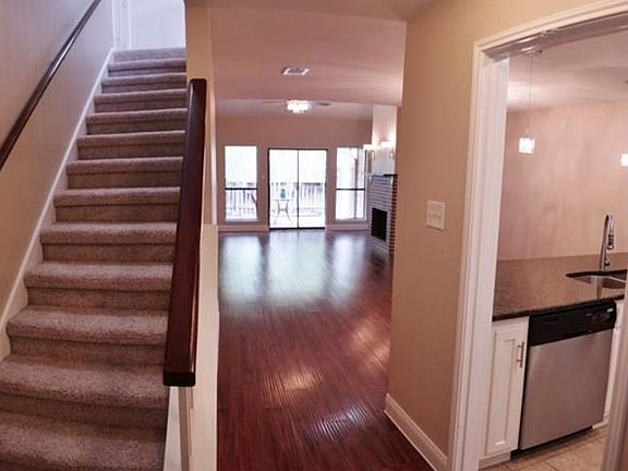 Upscale & modern condo with great attention to detail including flooring, lighting, &art niches with granite inserts. Stylish kitchen includes granite countertops, beautiful backsplash, stainless appls, & granite desk area.Great floorplan w/2 BR & 2 B on main level...large 2nd level loft w/ built-ins could be gameroom, study or 3rd BR. Covered patio, 2 car garage.Great location in this close in neighborhood! HOA includes water and wastewater. Pool, clubhouse, park and tennis courts, green belt view