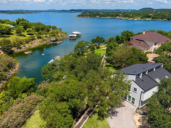 Welcome to your move-in-ready lake retreat, perfectly positioned on a quiet cove with spectacular views toward Starnes Island and just minutes from everything Lake Travis has to offer. Located on 1.18 acres in the highly sought-after Lake Travis ISD, this thoughtfully updated 3-bedroom, 2-bath home offers privacy, comfort, and direct access to the lake—and with the lake up, now is the perfect time to dive in. Behind two private, gated entrances, you’ll find a charming Hill Country home designed with both everyday living and weekend escapes in mind. The open-concept living, dining, and kitchen spaces on the upper level are framed by stunning lake views, with the spacious primary suite offering a peaceful owner’s retreat with upper-level privacy. Downstairs, two additional bedrooms, a full bath, and a generous bonus/media room provide flexible space for guests, entertaining, or relaxing. Enjoy seamless indoor-outdoor living with direct access to the lower deck and a thoughtfully designed backyard engineered with intention and investment—featuring cascading stonework, beautifully tiered landscaping, and ample space for a future pool. A vast yard provides ample space for a pool with panoramic views of the lake. The lower expansive green space overlooks the lake and offers room to roam, outdoor lounging, or simply soaking in the serenity of the waterfront setting. A 100-foot steel staircase leads to your private dock with two boat slips, two jet ski slips, and an upper deck with a built-in swing—your front-row seat to Lake Travis sunsets. The owner also has architectural plans for a future garage (not yet submitted or approved by the City of Austin), giving you additional flexibility for expansion. Now is your opportunity to embrace lakeside living at its best; right in the heart of Lake Travis.