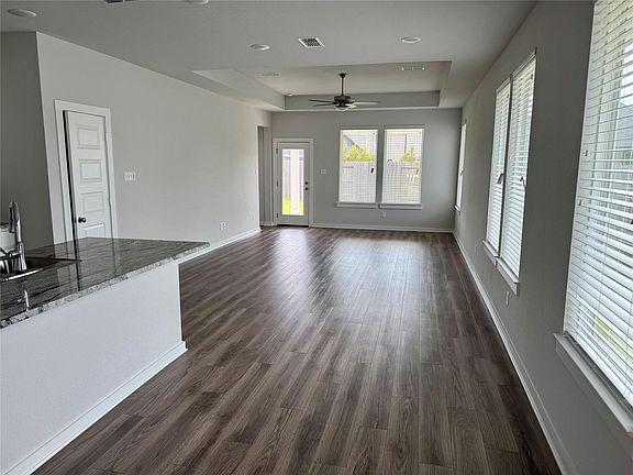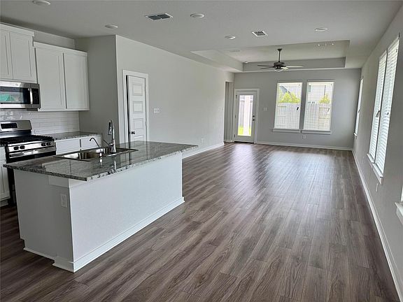 Beautiful one-story home featuring 3 bedrooms, 2 bathrooms, and a 2-car garage. The open layout offers a spacious kitchen with a large island, breakfast bar, and walk-in pantry, flowing seamlessly into the family room. Enjoy a bright primary suite with a double-sink vanity, high ceilings, and energy-efficient features. Relax on the covered patio overlooking the large backyard. Located on a cul-de-sac with a brick exterior and access to community pool, parks, FREE GYM, and more!