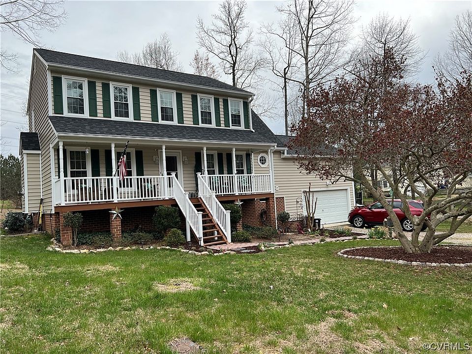 OWNER/AGENT - YARD SIGN MISSING - Charming house sits on an approx. 62 acre home site! Outdoor space is outfitted with a full country porch. A beautiful Pink Tulip Tree sits in the front yard! A spacious deck overlooks the huge rolling hill rear yard. The possibilities are endless with this much yard! Inside the home - The Great Room has a Gas Fireplace, Wood Floors and lots of natural light! The dining room is a perfect space for seating additional people or for a more formal atmosphere! Really feels like it is one big space! The kitchen has a Bosch Dishwasher and a SS Refrigerator that is 3 years old. The Kitchen counter can seat 3 people comfortably. Plenty of room to spread out and entertain. Primary Suite is located on the second level and has a walk in closet large enough to be an office! Primary bathroom has been updated with a 5 ft walk in shower. 2 more bedrooms and a 2nd full bath with tub and shower complete the second level. The house has dedicated Generator Hook Up to the Garage's Panel Box. The garage has a split unit and has both heat and air. This adds 444 sq feet to the house's overall square footage. Can be a garage or another room!