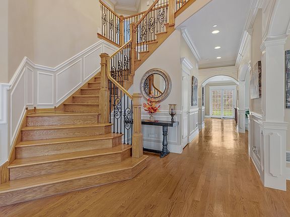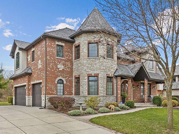 A truly elegant home in Ravenna awaits you! With 6 bedrooms, 5 full baths and 6000+ sq ft of living space, this meticulously maintained former model home offers sophistication, style, and thoughtful design at every turn. From its stunning stone & brick exterior to the exquisite interior with substantial trim work, including arched doorways, crown molding and tray ceilings with uplighting in every room, this home exudes luxury and charm. Step into the grand yet inviting foyer and feel the immediate sense of refinement. Gleaming hardwood floors flow seamlessly throughout the main level and up the stairs, providing a cohesive and polished look. The spacious living room opens to the formal dining room, featuring a coffered ceiling and ample room for a large table-perfect for hosting friends and family. The gourmet kitchen is a chef's dream, with a huge island that includes a gas cooktop with a ventless hood, a convenient sink, new double oven, plenty of 42' cabinetry and a walk-in pantry. The beautiful granite countertops complement the high-end finishes, including a double oven and an industrial-size Electrolux refrigerator. The sunny breakfast area offers an enjoyable spot for all your everyday meals. The elegant and inviting family room is anchored by a striking stone fireplace and adorned with palatial windows that flood the space with light. For those who work from home, the rounded office/den on the first floor offers an inspiring space. A full bath on the main level provides added convenience for guests or family. Upstairs, the primary bedroom suite is a true retreat. The spacious room includes a sitting area, can lighting, a tiered ceiling with uplighting, and stunning views of the lush foliage. The enormous walk-in closet (11x12) offers exceptional storage space, while the luxurious primary bath features a brand-new standalone tub, dual vanities, and an enclave shower with multiple shower heads. The additional bedrooms are also generously sized, with two of them featuring a walk-in closet and one with its own private full bath. The other two bedrooms share a convenient Jack n Jill bath. The second-floor laundry room is practical with shelving and a utility sink. The finished basement is just another highlight of this exceptional home. It offers a large, versatile space that is ideal for entertaining or family fun. With luxury vinyl plank flooring throughout, the basement provides a great setting for games, movies, or sharing a drink or a meal. Two additional bedrooms in the basement and a full bath provide comfortable accommodations for guests, ensuring everyone has their own space. There are also two storage rooms in the basement. Other updates include; entire interior was freshly painted; New HVAC for upstairs, new furnace in basement; routinely maintained cedar roof (last done 8/24), new freezer air compressor; newer hot water heater. Located in a great neighborhood which includes miles of walking paths and a neighborhood park! It's also close to shopping and just a few miles away from VH Metra station. Also located in Stevenson High School district!! This home truly offers it all: elegance, space, and meticulous attention to detail. Don't miss the opportunity to make this stunning home yours!