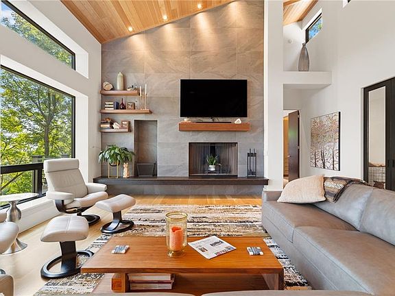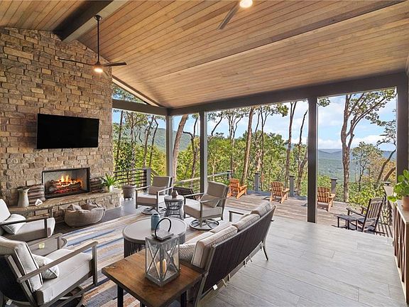 Perched on a premium homesite with panoramic views of the Atlanta skyline, this TO-BE-BUILT Mountain Modern masterpiece offers a rare combination of modern architecture, high-end luxury, and breathtaking natural beauty: where modern elegance meets the serenity of mountain living. This very unique home easily compares to multimillion dollar homes being built in surrounding areas. With this property one could enjoy a high quality home while appreciating the benefits of living in a private and gated, residential mountain community with resort style amenities at the foothills of the North Georgia mountains, only an hour from Atlanta. This forward-thinking builder utilizes construction technologies and materials that maximize energy efficiency and wall strength, minimize energy costs and maintenance, and nearly eliminate sound and air transmission. Clean lines and expansive glass frame stunning vistas, and seamlessly integrate the surrounding environment with the interior. This modern home features 4 bedrooms, 3.5 bathrooms, and approximately 3,650 highly efficient square feet of open concept living. The main level includes a vaulted great room with floor-to-ceiling windows, a gourmet chef’s kitchen with Wolf and Sub-Zero appliances, and a spacious primary suite with spa-inspired bath and private balcony. Additional highlights include a large, covered porch with massive stone fireplace, plus and integrated expansive deck — perfect for entertaining or soaking in the sunset’s over Atlanta. An “Architectural Digest” worthy white oak, cantilevered floating stair system, surrounded by white Texas limestone walls, transitions the main level to the terrace. The terrace level includes 3 additional bedrooms, a great room with an oversized modern wet bar, and another fireplace. The terrace level also includes an extra finished room that could be used as a home office, gym, or storage of your off-season wardrobe. Make this mountain modern retreat yours and experience luxury, low maintenance, views, and tranquility — all just a short drive from the city. Welcome to your future dream home in the exclusive, gated community of Big Canoe. Photos in the FMLS listing are examples of the to-be-built home and are not intended to be a complete duplicate of the new construction.