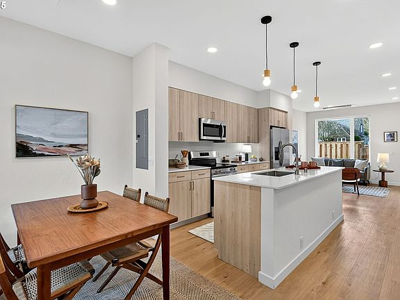 Welcome to Park20 — Portland’s new design-forward, eco-smart townhome community where modern living meets the calm of nature. The Oak model is one of nine two-bed, two-and-a-half bath homes within this 20-unit development. This residence offers a primary bedroom with ensuite and balcony, second-floor laundry, open living floor plan, and durable materials such as luxury vinyl flooring. These homes were designed with thoughtful building orientation, providing views of mature trees and custom, native plantings by a local landscape designer. The result is an immediate sense of openness—avoiding the closed-in feel common in urban settings—and a home-to-land ratio that offers true breathing room. The Earth Advantage certification underscores Park20’s commitment to sustainability and sets the community apart, ensuring verified energy efficiency, healthier interiors, and reduced environmental impact. Inside each home, large and abundant windows, fresh Scandinavian-inspired interiors, quartz countertops with an environmental seal, and glazed porcelain bath tile blend style with durability. Quality systems and appliances—including a Samsung heat pump, Rheem water heater, and Frigidaire/Electrolux kitchen suite—deliver reliable comfort and performance. For coveted additional storage, a fully decked attic and pulldown access ladder plus spacious exterior storage add rare, functional convenience. Park20’s location offers effortless access to coffee, drinks, deli favorites, grocery options, schools, public transit, and the airport—placing everyday essentials and local flavor just minutes away. These townhomes blend modern design, environmental integrity, and a true sense of space—bringing natural comfort back into city living.