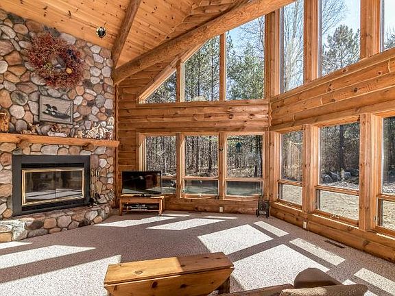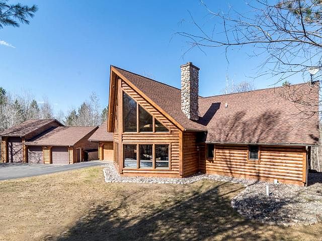 Gorgeous Tomahawk Log Home surrounded by wilderness with 11.18 acres of privacy! Quality constructed 1-owner move-in ready chalet. Enter the great rm w/massive wall of windows, log beams & pine plank ceilings giving you that Northwoods feel. Kitchen w/hickory cabinetry, gas range, & breakfast nook. Expansive deck overlooks the beautiful wooded backyard, & nearby Tomahawk River brings in lots of wildlife. Master BR w/walk-in closet, jacuzzi/shower & den area. 1st-fl lndry rm w/storage & utility sink, & separate half BA. 2nd fl w/2 BRs, full BA & extra bonus rm. Full fin. LL w/huge fam/rec rm, closet/bonus rm, full BA & hallway w/glazed porcelain tile, large wrkshp/storage rm leading to patio, & utility rm w/extra storage. The home also features C/A & backup generator. This property offers everything you could possibly need w/the att. heated garage & det. 3-car garage w/stall large enough to fit an RV. Located on a dead-end road in a quiet subdivision, 15 minutes to downtown Minocqua.