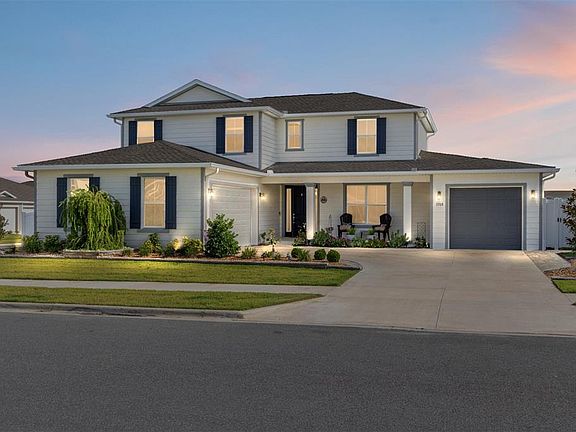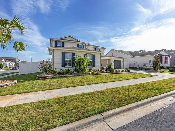 Welcome to the stunning Mulberry model in Calesa Township, offering 3,878 square feet of beautifully designed living space with 4 bedrooms, 4.5 bathrooms, and a flexible layout; ideal for modern living. From the moment you enter the elegant, tiled foyer, you'll appreciate the thoughtful details and upscale finishes throughout. The 1st floor features a spacious flex room perfect for a home office or den, a formal dining room currently used as a playroom, and a well-appointed laundry room with upper cabinetry and a utility sink. The luxurious primary suite is a true retreat, showcasing plush carpet, a tray ceiling, triple windows, dual walk-in closets, and a spa-inspired ensuite with quartz countertops, dual sinks, a glass-enclosed walk-in shower, and private water closet. At the heart of the home, the expansive great room boasts a tray ceiling and an impressive 16-foot sliding glass door, seamlessly blending indoor and outdoor living. The gourmet kitchen is designed to impress with a large island, quartz countertops, staggered blue cabinetry, tile backsplash, built-in microwave and oven, and a generous walk-in pantry. A casual dining area and a stylish wet bar with beverage refrigerator add to the home's entertaining appeal. A half bath and access to the single garage complete the main level. Upstairs, you'll find 3 additional bedrooms, each with ceiling fans and closets, along with multiple ensuite baths and a versatile loft space currently used as a sewing room. A built-in cabinet at the top of the stairs provides extra storage and functionality. Step outside to enjoy an extended screened lanai with ceiling fans and a relaxing hot tub, perfect for unwinding or entertaining year-round. The beautifully landscaped corner lot also features a paver patio, 3 gated access points, new sod, and gutters for added convenience. Located in the highly desirable Calesa Township, residents enjoy resort-style amenities including community pools, miles of trails, playgrounds, dog parks, and access to the Florida Aquatics Swimming & Training (FAST) facility. With its exceptional design, premium upgrades, and unbeatable location, this home truly has it all.